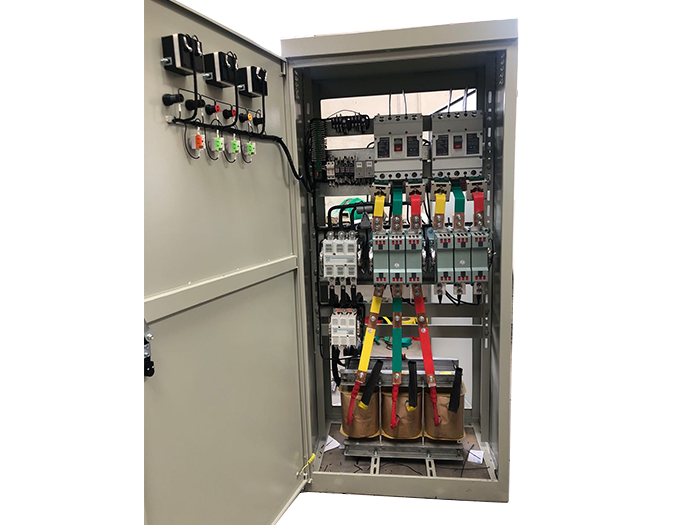 該電柜適用于三相220v、三相380v、三相440v電機(jī),特別適用于制砂機(jī),該電柜采用自耦降壓啟動,其中一臺電機(jī)降壓啟動,啟動完畢實行自動轉(zhuǎn)換,然后兩臺電機(jī)全壓運行。